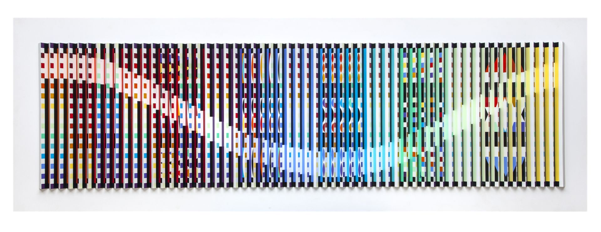 Bekend om zijn pionierswerk in de kinetische kunst, fascineerde Israëlische kunstenaar Yaacov Agam de wereld met zijn geometrische abstractie. Zijn driedimensionale schilderijen, sculpturen en lenticulaire prints, ook wel agamographs genoemd, kennen een groot succes. Agam smelt formalisme en mysticisme samen om een zintuiglijke ervaring voor de kijker te scheppen. Hierbij zijn beweging en het gezichstpunt van de toeschouwer onmisbaar.